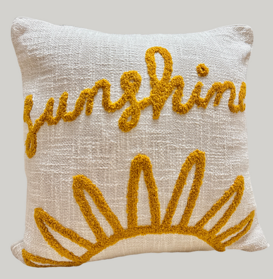 Hello Sunshine Embroidered Cushion Cover 16 inch X 16 inch
