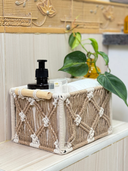 Handcrafted Basket for Gifting & organising. | Golden Macrame Basket