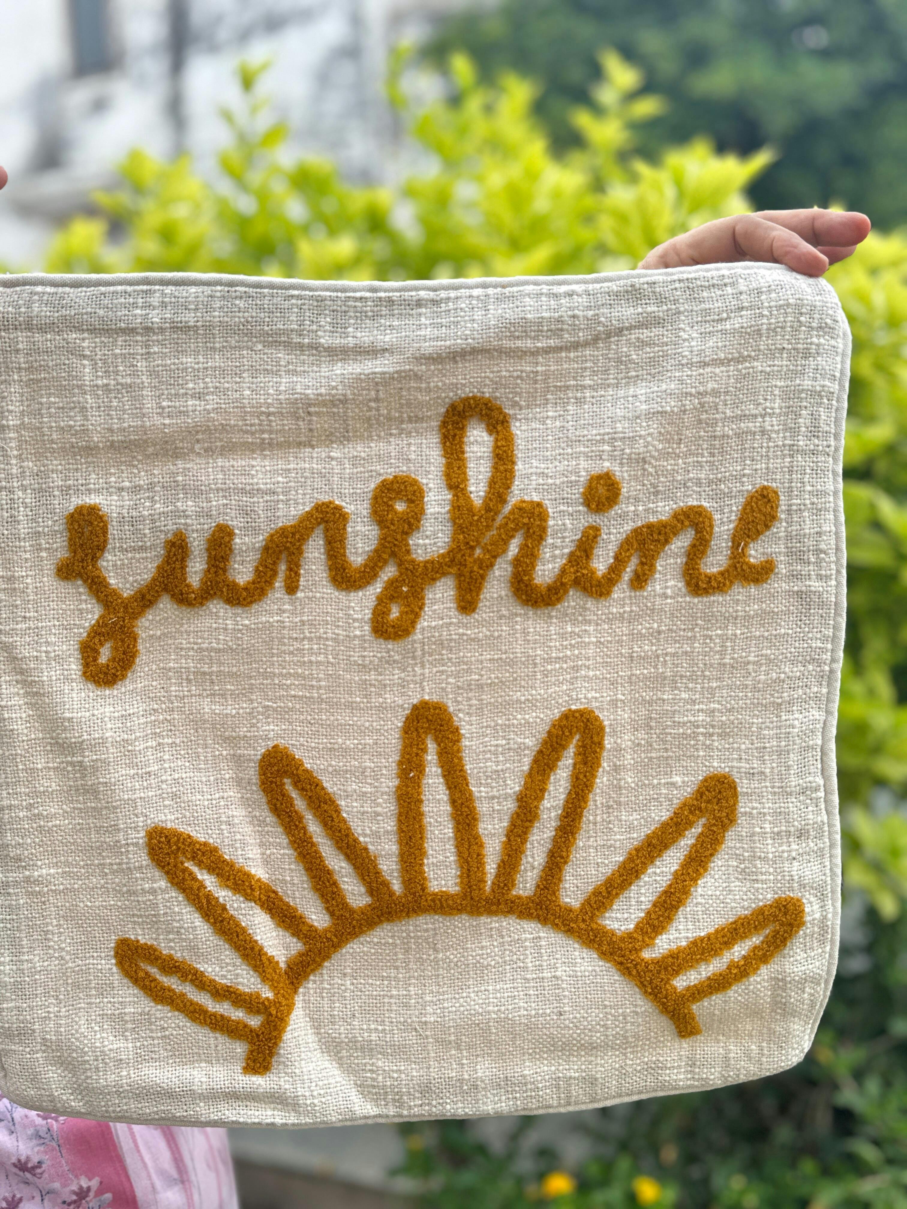 Hello Sunshine Embroidered Cushion Cover 16 inch X 16 inch